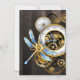 Steampunk Clock with Mechanical Dragonfly Magnetic Invitation