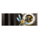 Antique dials with gold and brass gears, decorated with mechanical dragonfly on brown, striped background. Steampunk.