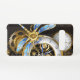 Antique dials with gold and brass gears, decorated with mechanical dragonfly on brown, striped background. Steampunk.