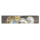 Antique dials with gold and brass gears, decorated with mechanical dragonfly on brown, striped background. Steampunk.