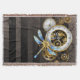 Steampunk Clock with Mechanical Dragonfly Throw Blanket