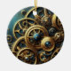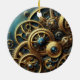 Steampunk Clockwork Gold and Teal Ceramic Ornament