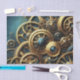 Gold clockwork glistens against a teal background in this elegant steampunk design bringing a vivid industrial feel to modern art. This is perfect for crafts like decoupage!