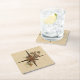 Rustic metal look coaster design features a Steampunk style compass star with floral embellishments on vintage faux burlap background