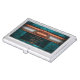 Steampunk copper and silver on teal cogs, Monogram Business Card Case