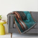 Steampunk copper and silver on teal cogs, Monogram Throw Blanket