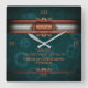 Steampunk, copper on teal cogs, Monogram Square Wall Clock