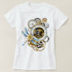 Antique dials with gold and brass gears, decorated with mechanical dragonfly on brown, striped background. Steampunk.