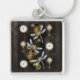 Antique dials and keys with gold and brass gears, decorated with mechanical, steampunk dragonflies on brown, striped background.