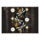 Antique dials and keys with gold and brass gears, decorated with mechanical, steampunk dragonflies on brown, striped background.