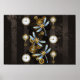 Steampunk Dragonflies on brown striped background Poster