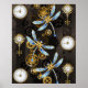 Steampunk Dragonflies on brown striped background Poster