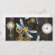 Antique dials and keys with gold and brass gears, decorated with mechanical, steampunk dragonflies on brown, striped background.