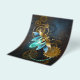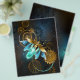 Steampunk firefly with blue transparent wings and green light bulb on worn, brown, textured background. Steampunk style.