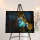 Steampunk firefly with blue transparent wings and green light bulb on worn, brown, textured background. Steampunk style.