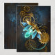 Steampunk firefly with blue transparent wings and green light bulb on worn, brown, textured background. Steampunk style.