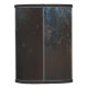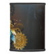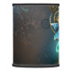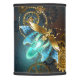 Steampunk firefly with blue transparent wings and green light bulb on worn, brown, textured background. Steampunk style.