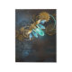 Steampunk firefly with blue transparent wings and green light bulb on worn, brown, textured background. Steampunk style.