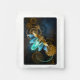 Steampunk firefly with blue transparent wings and green light bulb on worn, brown, textured background. Steampunk style.