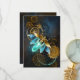 Steampunk firefly with blue transparent wings and green light bulb on worn, brown, textured background. Steampunk style.