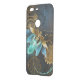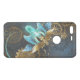 Steampunk firefly with blue transparent wings and green light bulb on worn, brown, textured background. Steampunk style.