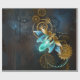 Steampunk firefly with blue transparent wings and green light bulb on worn, brown, textured background. Steampunk style.