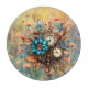 This beautiful round glass cutting board features AI-generated Steampunk style flowers and timepieces in center on a yellow wildflower background. Coordinating kitchen linens available.