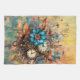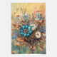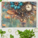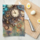 This pretty kitchen towel features AI-generated Steampunk style flowers and timepieces in center on a yellow wildflower background.