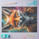 This striking portrait features a sharp-eyed fox dressed in steampunk-inspired attire, rendered in vivid splashes of teal, gold, and ember tones. The contrast between refined clothing and wild animal instinct gives the piece a powerful, intelligent presence — bold, modern, and full of character.