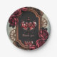 Steampunk Frame with Red Roses and Gears Paper Plates
