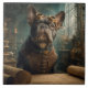 Add a touch of mechanical wonder to your home with this exquisite Steampunk French Bulldog decorative ceramic tile. The artwork features a curious Frenchie explorer, masterfully outfitted in a leather vest and brass aviator goggles, set against a magnificent workshop of spinning gears, clockwork, and vintage map scrolls. It’s a perfect fusion of pet personality and Victorian industrial elegance.