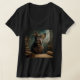 Add a touch of industrial elegance to your wardrobe with this Steampunk French Bulldog Women's V-Neck T-Shirt. This captivating design features a dapper Frenchie outfitted in intricate Victorian brass goggles and a detailed leather vest, standing amidst the mysterious gears and vintage scrolls of an inventor's study.