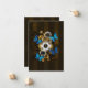 Composition of round steampunk clock with black Roman numeral dial, decorated with gold and brass gears, blue Morpho butterflies and damaged lenses on brown striped background. Steampunk style.
