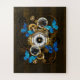 Steampunk Gears and Blue Butterflies Jigsaw Puzzle