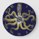 Steampunk Gears Octopus Kraken Nautical Gold Blue Large Clock