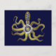 This tentacled steampunk sea monster has eight wire-like gold appendages, a central silver gear and plenty of gears and bolts making up its head, eyes and suction cups. It's a robot octopus / kraken, a metal machine monster for anyone who likes geeky science-fiction / fantasy creatures. Dark-blue background color is customizable.
