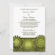 Plain white envelopes are included with paper invitations and will come to fit the invitation size you select. If you don’t need the envelopes, you may choose to not receive them by selecting the dropdown below "Envelopes" and choosing "None." If you’d like to have a design on your envelopes, you can browse all of these available envelopes to find the design that complements your Steampunk Gears Wedding Invite Green Invitation.