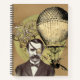 Fantastic Steampunk themed collage features vintage gentleman with clock face eye patch, assorted grungy metal gears and hot air balloon / time travel airship