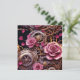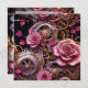 Pretty personalized gothic Victorian steampunk photo template Valentine's Day card. Beautiful pink roses, gold, silver and copper metal gears. The back has three spaces for pictures in the shape of a heart. You can edit the text too in the personalize area.