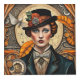 Steampunk Women and black cats Halloween seamlessly blends the enchantment of Halloween with the captivating aesthetics of the steampunk genre. This artwork invites viewers to a world where Halloween's magic and steampunk's sophistication collide.