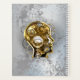 Conceptual, mechanical, human head with antique manometer and metal gears against gray industrial background. Steampunk style.