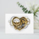 Mechanical, volumetric, steampunk heart with pressure gauge, steel and gold gears on white background. Steampunk style.
