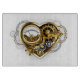 Mechanical, volumetric, steampunk heart with pressure gauge, steel and gold gears on white background. Steampunk style.