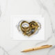 Mechanical, volumetric, steampunk heart with pressure gauge, steel and gold gears on white background. Steampunk style.