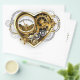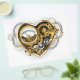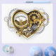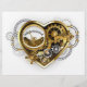 Mechanical, volumetric, steampunk heart with pressure gauge, steel and gold gears on white background. Steampunk style.