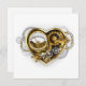 Mechanical, volumetric, steampunk heart with pressure gauge, steel and gold gears on white background. Steampunk style.