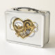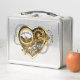 Mechanical, volumetric, steampunk heart with pressure gauge, steel and gold gears on white background. Steampunk style.