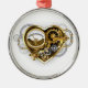 Mechanical, volumetric, steampunk heart with pressure gauge, steel and gold gears on white background. Steampunk style.