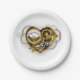 Mechanical, volumetric, steampunk heart with pressure gauge, steel and gold gears on white background. Steampunk style.