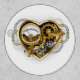 Mechanical, volumetric, steampunk heart with pressure gauge, steel and gold gears on white background. Steampunk style.